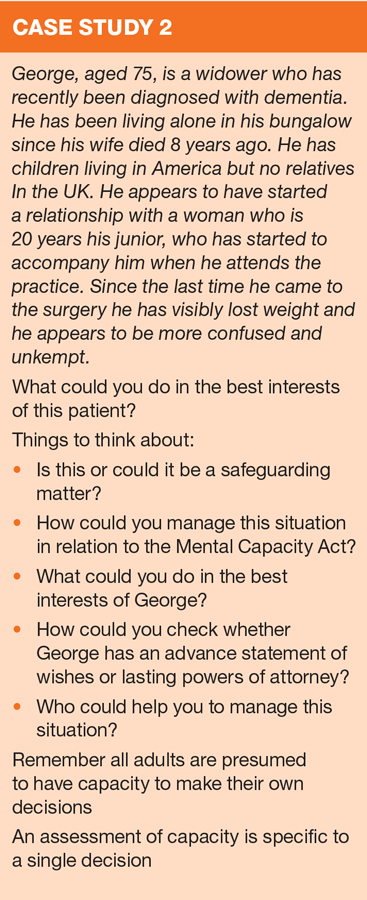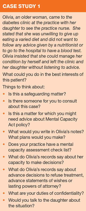 Capacity is vitally important in health care, and practices need to be aware of the ways that the Mental Capacity Act affects safeguarding practice. The Act came into force in 2005, and the Deprivation of Liberty safeguards (DoLs) were added in 2007. These two acts are hugely important because they were designed as a legal framework to support people to make decisions themselves where it is possible, and for decisions to be made in a person’s best interests where it is not.