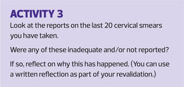 Cervical smears should not be taken during menstruation. At this time it is more difficult to visualise the cervix and a blood stained sample is more difficult for the laboratory to process. Endometrial cells, lost during menses, can look like dyskariotic cells, making reporting more difficult and a false positive result more likely. However, the sample can be taken at any other time during a cycle.