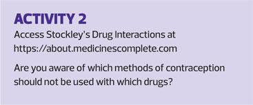 Stockley’s Drug Interactions is the most relevant and accurate drug interaction resource for the UK population and is recommended by the FSRH.19 Most NHS healthcare professionals can get free access to Stockley’s using an Open Athens login. (See Activity 2) The FRSH has also issued guidance on which methods of contraception are reliable for women taking liver enzyme-inducing drugs. (Table 2)