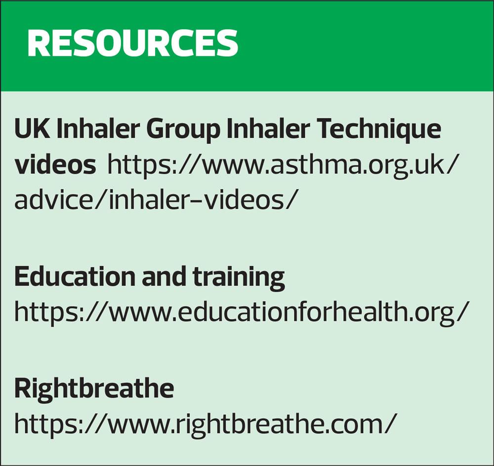 Download a copy of the national standards for inhaler technique4 and use the checklists to guide you when assessing patients’ inhaler technique.