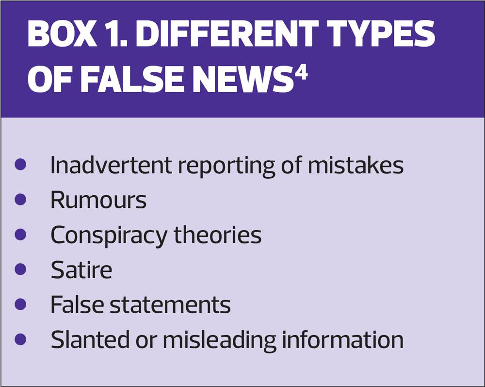 In the few months since the initial cases of COVID-19 there has been a significant amount of confusing and incorrect information shared over both traditional and social media. The World Health Organization has referred to an ‘infodemic’ of misinformation, disinformation and rumours all of which presents huge barriers when seeking to identify dependable sources of information.2 Misinformation involves inaccuracy and errors whereas disinformation refers to purposefully created falsehoods, which are then spread with malicious intent. Both gain traction when people are seeking solutions, in this case to the pandemic situation, and then unwittingly contribute to the spread of inaccurate information.3
