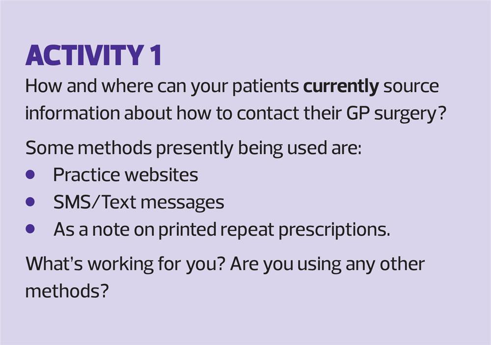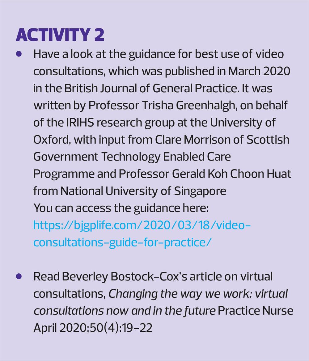 This is also a time of opportunity, where healthcare professionals are actually increasing use of alternatives to face-to-face clinics through video consultations (Activity 2).
