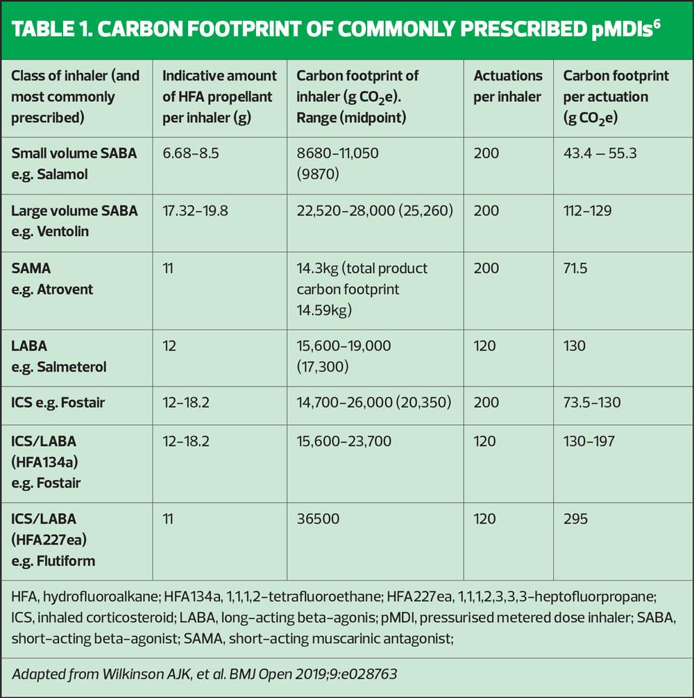 Authors of the study, published in BMJ Open, say switching to DPIs, or small volume HFA MDIs instead of high volume HFA inhalers could achieve substantial carbon savings (Table 1).