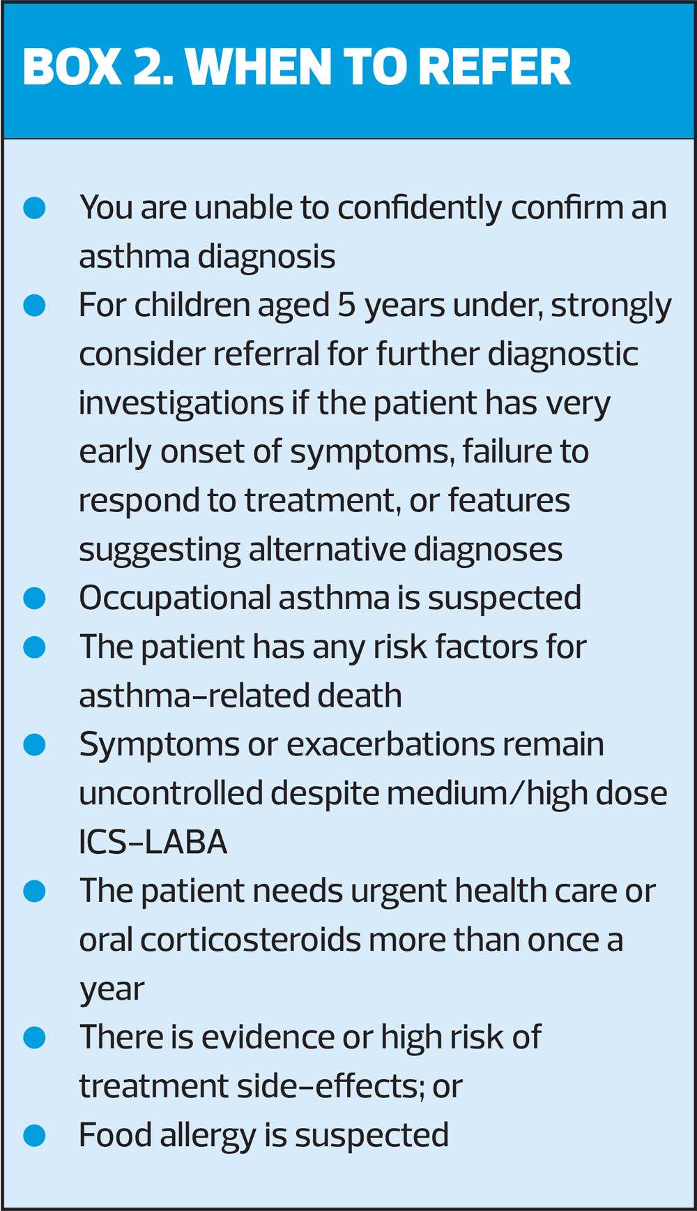This decision was based on evidence that SABA-only treatment increases the risk of severe exacerbations, and that adding an ICS significantly reduces this risk. The ICS-containing treatment can be delivered by regular daily treatment, or in mild asthma, by as-needed low dose ICS-formoterol. In the UK, however, this approach would involve the use of unlicensed medication as no combination inhaler is licensed to use on a purely ‘as required’ basis.