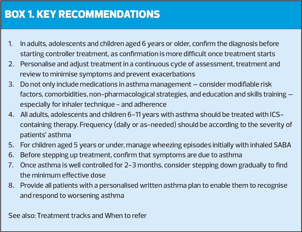 In all patients, GINA recommends that we should offer a continuous cycle of assessment, adjustment and review. This should comprise: