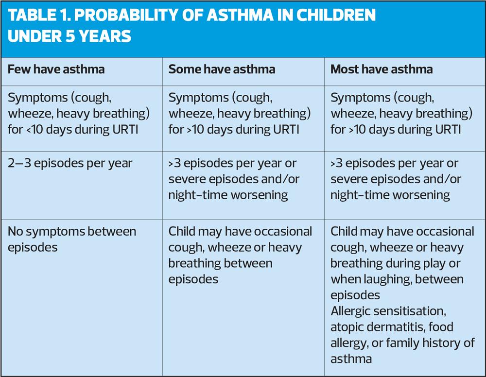 It can be difficult to diagnose asthma in children under 5 because episodic respiratory symptoms (e.g. wheezing, cough) are also common in children without asthma. A probability-based approach, based on the pattern of symptoms during and between viral upper respiratory tract infections (URTI) may be helpful in discussions with parents, and allows individual decisions to be made about whether to give a trial of ICS. It is important for the clinician and the parents to make decisions for each child individually to avoid over- or under-treatment.