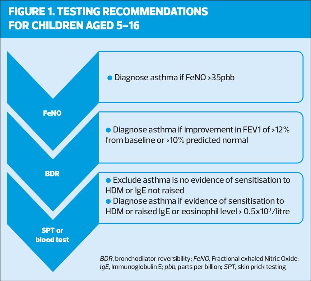 Current drivers for improving health outcomes across the NHS include early and accurate diagnosis of medical conditions. This is seen clearly in the national bundle of care for children and young people with asthma which points out that unrecognised and untreated asthma leads to dangerous asthma attacks and impairs quality of life for children and their families.5 Asthma is a condition that is both under, and over diagnosed,6 and in a bid to improve diagnostic accuracy the draft joint guideline recommends that diagnosis of asthma should not be confirmed without a clinical history suggestive of asthma and a supporting objective test.