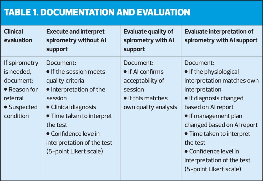 Outcome measures: Outcomes include the quality analysis and interpretation of the spirometry session and the time taken to interpret the results with and without AI support. Additionally, the confidence of the clinicians in their interpretation and in the AI process was evaluated.