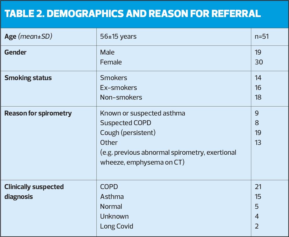 The most convenient and cost-effective way of providing spirometry for patients is in primary care, but provision is suboptimal, particularly following the COVID-19 pandemic.6 Studies show only 13.4% of spirometry performed in primary care fully meet ATS/ERS guidelines,7 and there are poor levels of agreement in spirometry interpretation between primary care staff and pulmonologists.6 Primary care practitioners report low confidence in identifying technical errors or interpreting spirometry.8,9 Important consequences include under-diagnosis, misdiagnosis and unnecessary referral to secondary care.