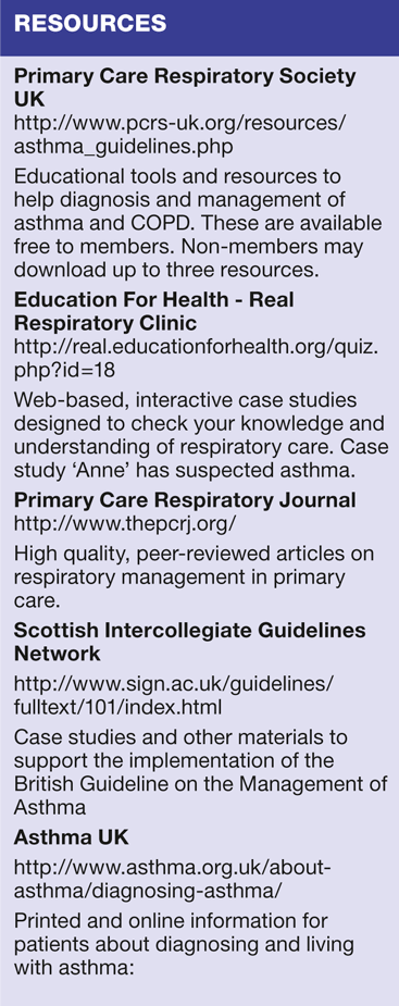 13. Small I, Levy M Opinion Sheet No 30 Diagnosis of Asthma In Adults. Primary Care Respiratory Society UK. 2009 http://www.pcrs-uk.org