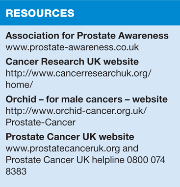 Almost 41,000 men are diagnosed with prostate cancer each year, making it the most common form of cancer in men with one in every four male cancers being prostate cancer. It is more common in men over 50, especially if a first degree relative (father or brother) has been diagnosed with it. Having a family history of prostate cancer can increase the risk of developing the condition approximately 2.5-fold. Afro-Caribbean men are also known to be at higher risk compared with other ethnic groups — three times as many men from African and African Caribbean backgrounds will develop prostate cancer compared with white men. The reasons for this remain unclear but could be genetic. Interestingly, and for reasons that also remain unclear, men with diabetes have a lower risk of developing prostate cancer.2 Prostate cancer death rates have dropped 20% in the past 20 years,3 and this is thought to be due to the use of the Prostate Specific Antigen (PSA) blood test; however, the decision whether or not to have the test is not a straightforward one. There is a very useful infographic for patients on the Prostate Cancer UK website.4