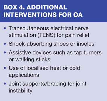 Additional, non-pharmacological interventions for the management of OA are shown in Box 4.