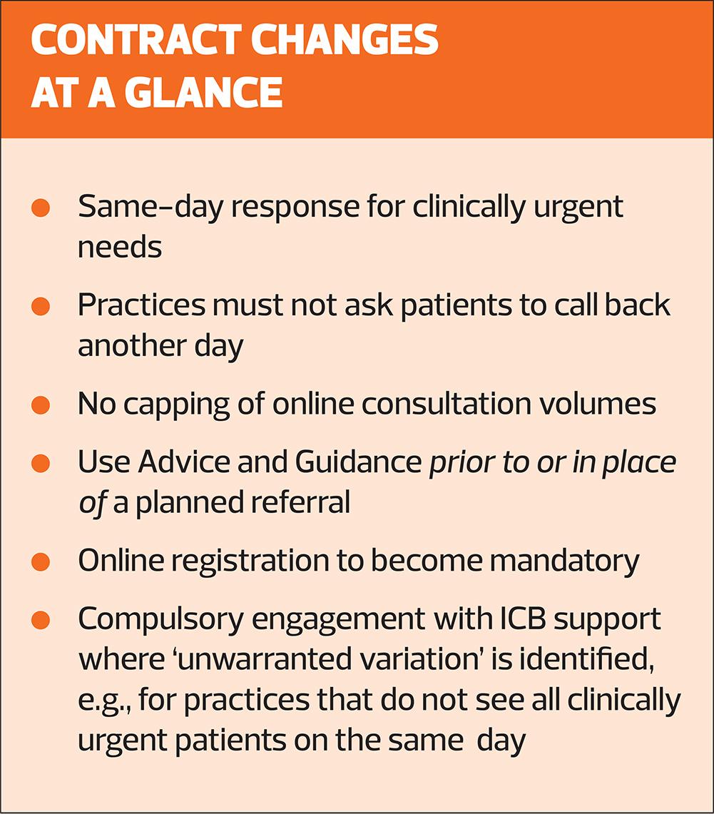 The 2026/27 contract will require practices to ensure unlimited same-day access to patients with clinically urgent needs, forbidding them from capping the number of consultation requests they can respond to even when they are full.