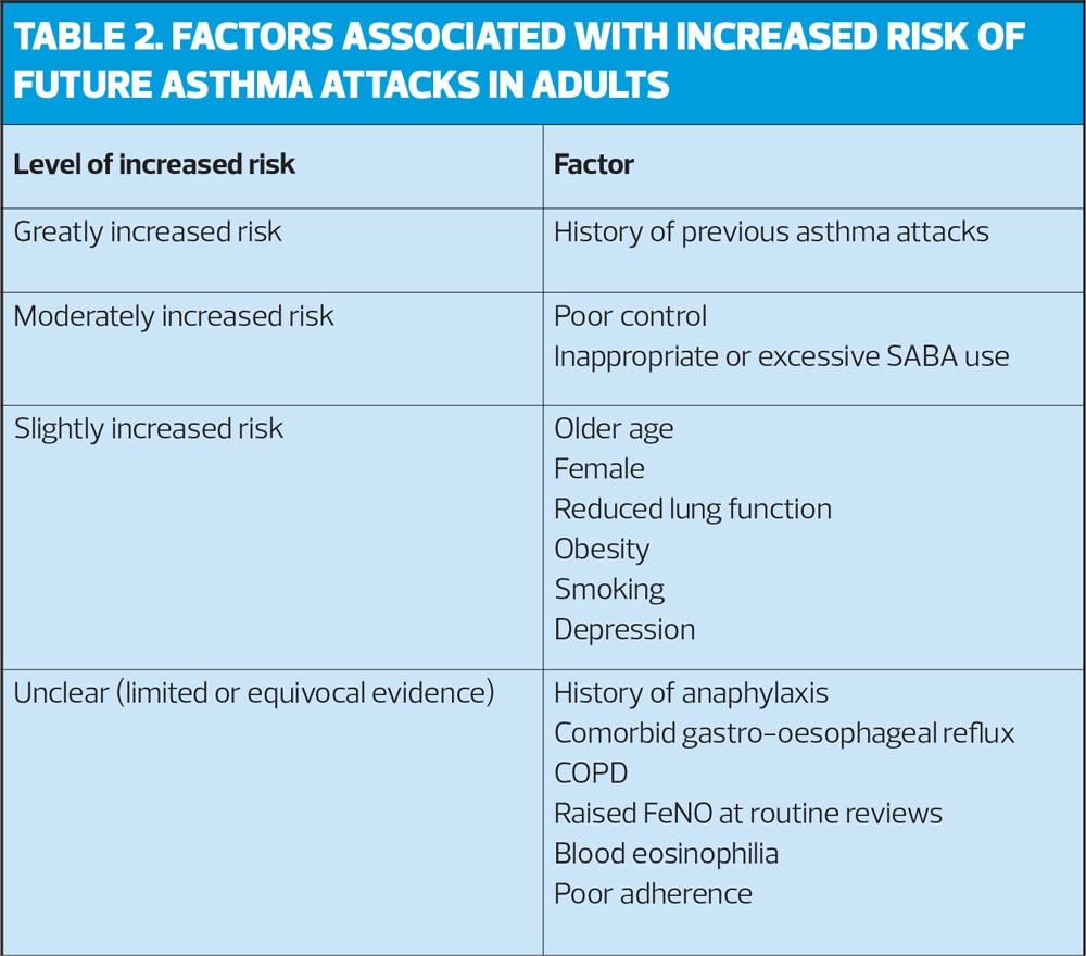 Factors associated with an increased risk of an asthma attack are shown in Table 2.