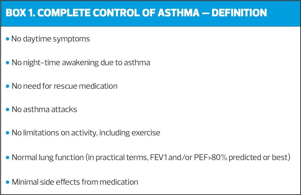Good asthma control is associated with little or no need for SABA, which should only be used for the relief of symptoms.