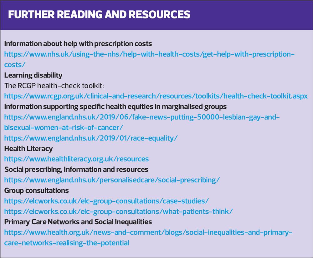 In January 2019, a five year GP contract framework was agreed, with the intention of stabilising general practice and facilitating delivery of the NHS Long Term Plan.25,26 There was an extension to the contract, in the form of a direct enhanced service (DES) and this would be offered to general practices to enable them to form primary care networks (PCNs), generally covering populations of around 30,000 to 50,000 people. Among the seven national service specifications were to be initiatives to tackle inequalities (to be agreed at local level). This had been expected to involve collaborative working across health and social care together, understanding the demographics of the local population and useful application of data and analytics to understand what is good and what might be improved regarding health equity in the PCN locality. However, this – together with CVD diagnosis and prevention, personalised care and anticipatory care – has now been deferred to 2021-22, following renegotiation with the BMA’s GP committee.27