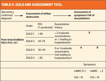 GOLD has revised its ABCD assessment tool, and now recommends the use of a new, slightly simpler version, the ABE assessment tool (Table 5).
