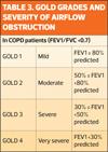 Because there is only a weak correlation between severity of airflow obstruction and symptoms, formal assessment of symptoms using validated questionnaires is also needed. GOLD grades of severity of COPD can be found in Table 3.