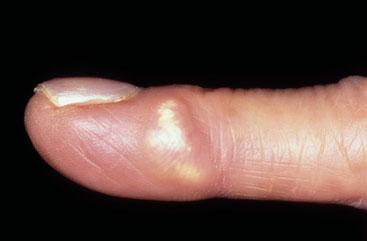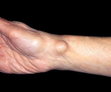 Ganglions most commonly develop in the region of the wrist and hand. The foot may also be affected. Younger age groups are most commonly affected with women more commonly suffering with the problem than men. They are benign tumours and when examined are firm and usually well circumscribed. They may vary in size from one to several centimetres. The two main reasons for presentation are a fear that it may be cancer or that it is simply unsightly. Traditionally, a recommended treatment was to hit it with The Bible. However, my problem when advising this, is not really knowing how hard it should be struck! Surgery is an alternative but there is a significant recurrence rate.